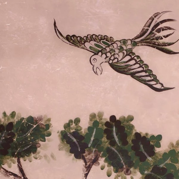 Fairy tale mural wallpaper with plaster pink background