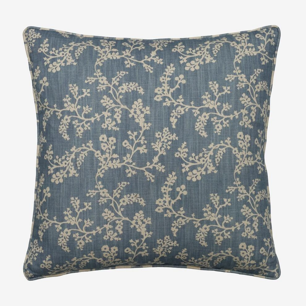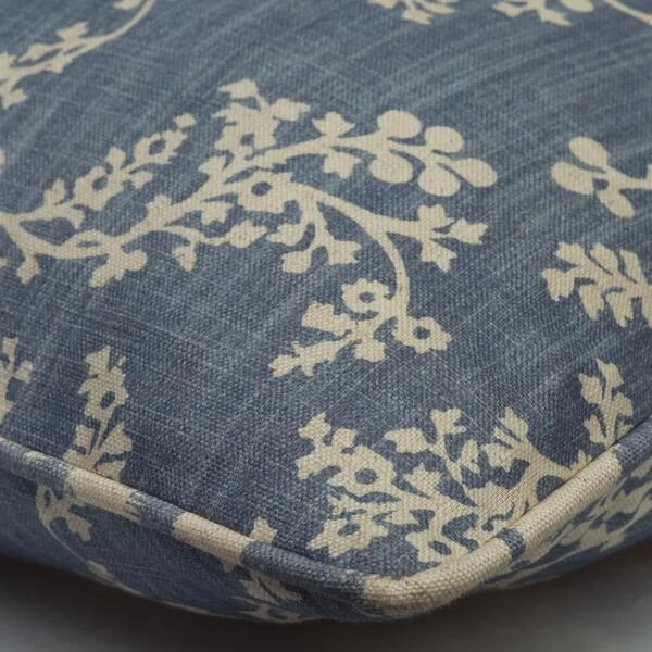 Floral cotton cushion in denim blue